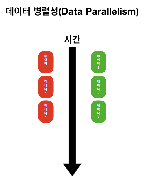 데이터 병렬성 : 전체 데이터를 나누어 서브 데이터들로 만든 뒤, 서브 데이터들을 병렬 처리해서 작업을 빠르게 수행하는 방법.