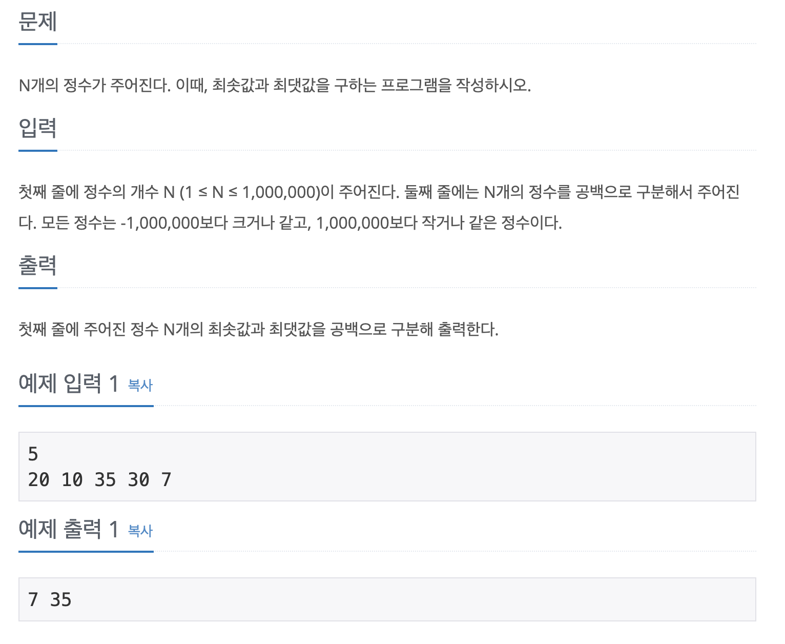 [백준 알고리즘] #10818번 : 배열/속도 향상 본문