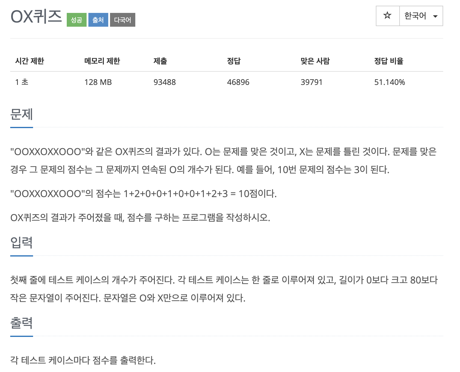 이 문제에서는 O의 개수에 따라 더하기 때문에 각 배열의 count(O의 개수)를 받아서 처리할 수 있다.